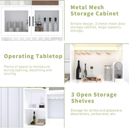 DynJest 67.3" Tall Modern Kitchen Pantry Storage Cabinet with Drawer and Shelves, Tilt Out Trash Can, Coffee Bar Wine Cabinet with LED Lights and Power Outlet, Wine Glass Rack, 2 Mesh Doors (White