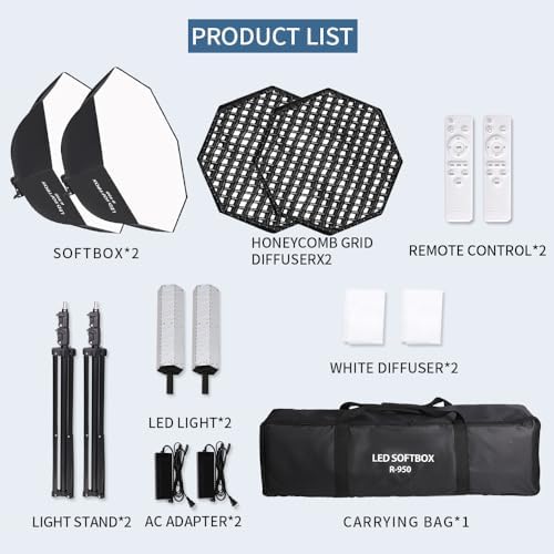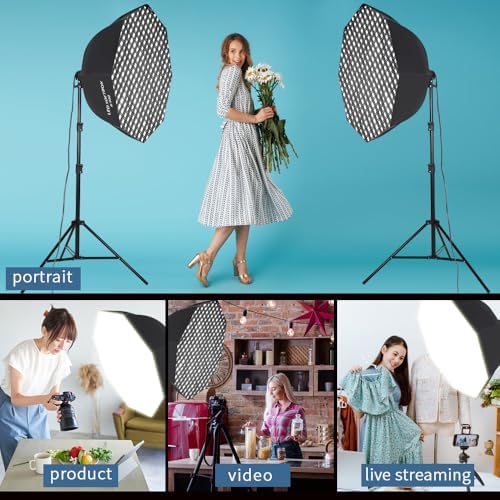 GSKAIWEN 110W Octagonal Parabolic Softbox Lighting Kit, 37.4 "\/95cm Soft Box with Honeycomb Grid\/Remote Control\/Stand for Studio Light, Video Recording, Portraits, Product Photography, Live Str