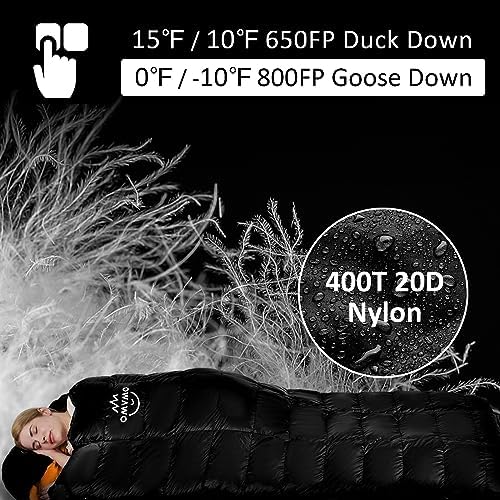 OMVMO -10°F 0°F 10°F 15°F Down Sleeping Bag for Adults,800\/650 Fill Power,Ultralight Wearable 4 Season Cold Weather Rectangle Sleeping Bag for Camping Hiking,Can be Used as a Down Blanket or Cloak