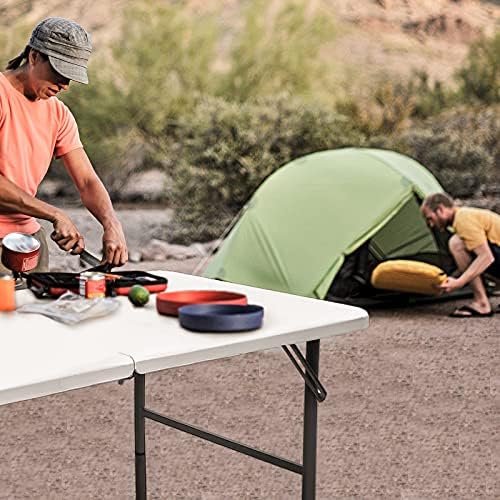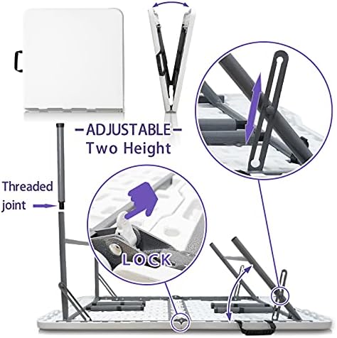 Gocamptoo Folding Table,4ft Indoor Outdoor Heavy Duty Portable Folding Square Plastic Dining Table w\/Handle, Lock for Picnic, Party, Camping (4 FT) \u2026