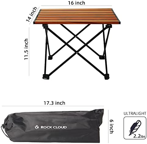 ROCK CLOUD Portable Camping Table Ultralight Aluminum Folding Beach Table Camp for Camping Hiking Backpacking Outdoor Picnic, Wood Grain