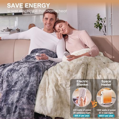 Dowin 加热盖毯,扎染人造毛皮电热毯 127 厘米 x 152.4 厘米,带 5 个快速加热级别和 4 小时自动关闭,ETL&FCC 认证加热投掷,家庭办公室使用(米色)