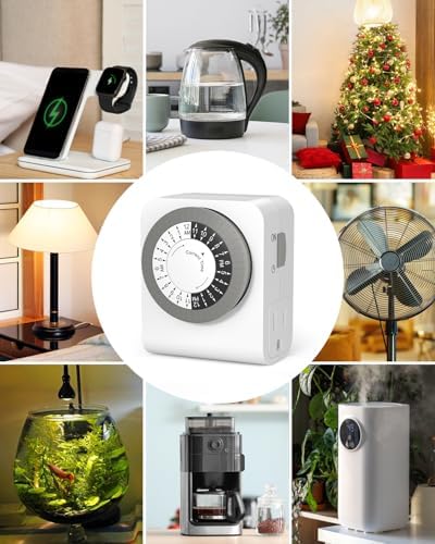 BN-LINK Outlet Timer with 2 Grounded Outlets, Mechanical Light Timer for Electrical Outlets Indoor, 24-Hour 3-Prong Timer Outlet for Lamp, Indoor Lighting and Christmas Lights, 15A\/1875W, 1 Pack