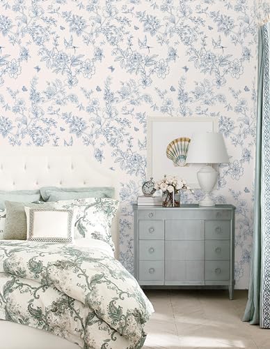 Froluya Cream White and Blue Floral Wallpaper Peel and Stick Wallpaper 17.7"x118.1" Vintage Floral Peel and Stick Wall Paper Removable Boho Self Adhesive Contact Paper for Bedroom Bathroom Vin