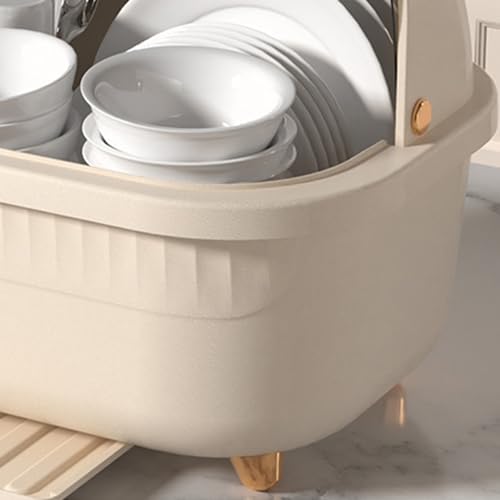 Generic Dish Drying Rack, Multifunctional Space Saving Dish Drying Box Drying Rack Dish Bowl Drying Box Dish Rack with Cover Dish Drying Rack with Cover with Lid Cover for Kitchen, Apricot M