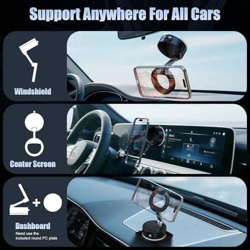 Magnetic Phone Holder for Car Super Magnet, 360°Adjustable Portable Foldable Phone Mount for Dashboard\/Gym\/Mirror\/Shower, Compatible with iPhone 16 Pro Max\/15\/14\/13\/12 & Android Magsafe Cas