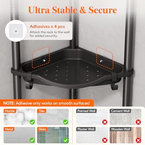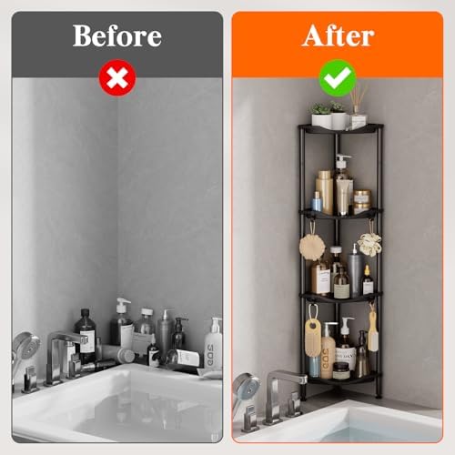 Lifewit 4 Tier Floor Standing Shower Caddy Corner, Plastic Bathroom Organizer Shelf Rack for Storage Shampoo, Body Wash Care, Skincare, Black