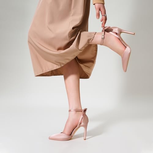 Trary Heels for Women Closed Pointed Toe Heels Women's Pumps Stiletto High Shoes with Bow Knot Comfortable Ankle Strap Office Party Wedding Dress Shoes 3.74" Heel