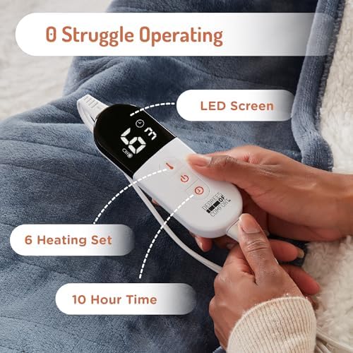 Degrees of Comfort Heating Blanket \\ u0 Single bed size Soft Sherpa and flannel electric blanket, 6-speed heating setting, 0-hour automatic shutdown, overheat protection, ETL certification, 57.48 cm