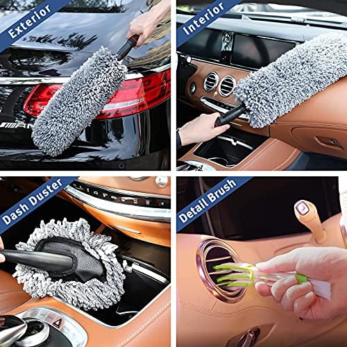 upra Ultimate Car Duster Kit,Best Microfiber Multipurpose Duster,Interior &Exterior Cleaning Tools,Dashboard Detailing Brush,Scratch Lint Free,Pollen Removing,extendable Handle,Tuck,SUV,RV,Set of