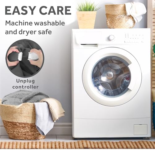 Sunbeam Royal Sherpa Foot Pocket Heated Throw Electric Blanket, 50" x 60", 4 Heat Settings, 4-Hour Auto Shut-Off, Warming Throw for Couch or Bed, Fast Heating, Machine Washable, Grey
