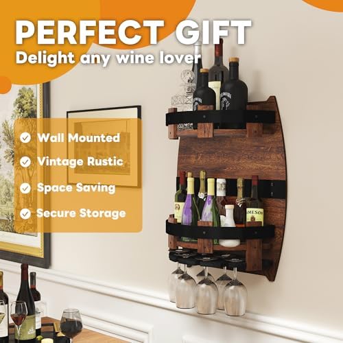 Gtouse Wooden Wine Rack Barrel,Vintage Wine Rack Wall Mounted Champagne Bottle Holder, Gift for Wine Lover,Drinks Cabinet Shelf for Wein, Whiskey, Beer