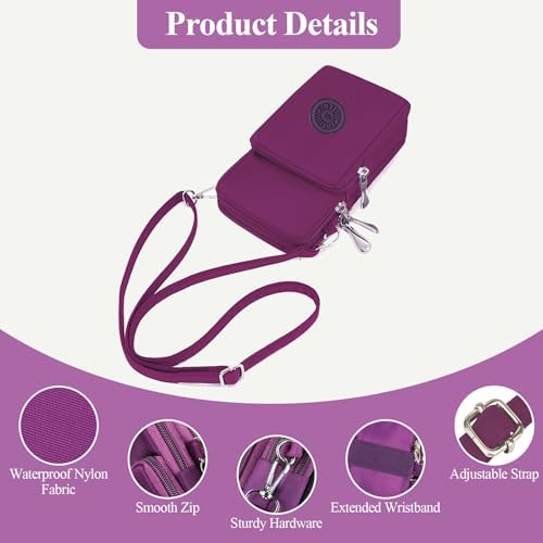WITERY Waterproof Nylon Cute Crossbody Cell Phone Purse Smartphone Wallet Bag for Women