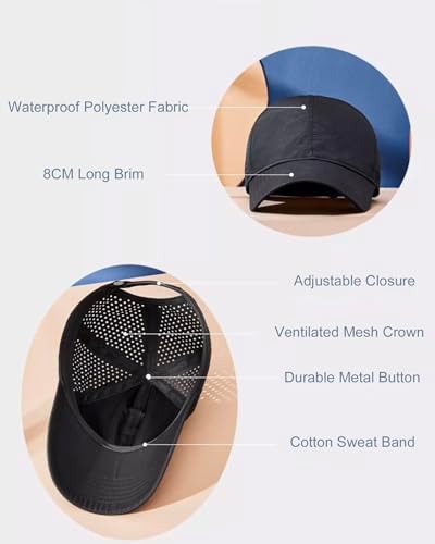 Gelante Men Women Waterproof Quick Dry Baseball Cap Run Hats Mesh Lightweight for Outdoor Sports