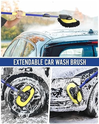 SEG Direct Car Wash Brush Mop Kit Extendable with Long Handle, Detachable Pole, D Shaped Grip, Chenille Scratch-Free Replacement Head, Cleaning Dusters Towels, for Car RV Truck Washing Detailing