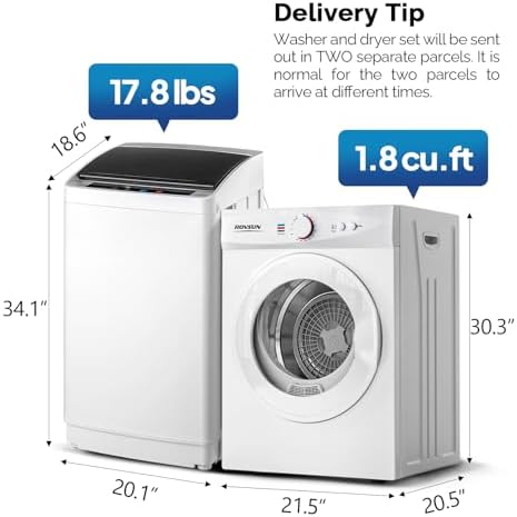 ROVSUN 1.8CuFt Portable Clothes Dryer and 17.8LBS Full-Automatic Washing Machine Set, Compact Laundry Washer and Dryer Combo Set with Stainless Steel Inner Tub, for Apartment, Dorms, Home