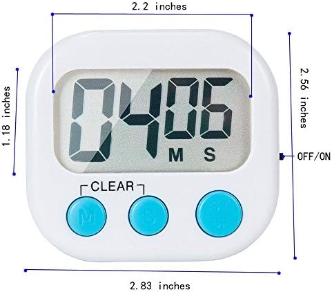 LinkDm 6 Pack Small Digital Kitchen Timer Magnetic Back and ON\/Off Switch,Minute Second Count Up Countdown, White