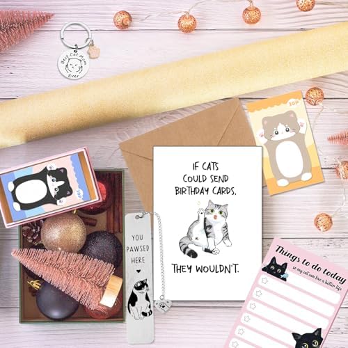 Cat Gifts for Cat Lovers, Cat Gifts for Women, Including Cartoon Sticky Notepad Ballpoint Pen Sticky Notes Greeting Card Greeting Card Keychain Bookmark