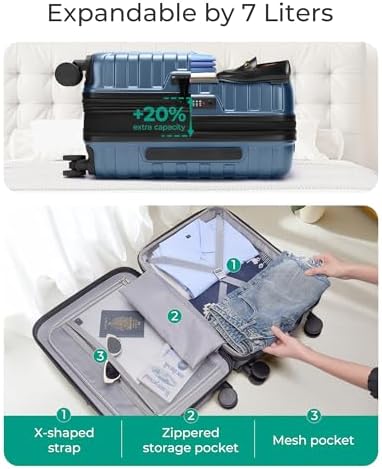 BAGSMART Carry On Luggage 22x14x9 Airline Approved with TSA Lock,20 Inch Lightweight Luggage with Spinner Wheels,100% PC Hard Shell Carry On Suitcases for Men Women,Royal Blue
