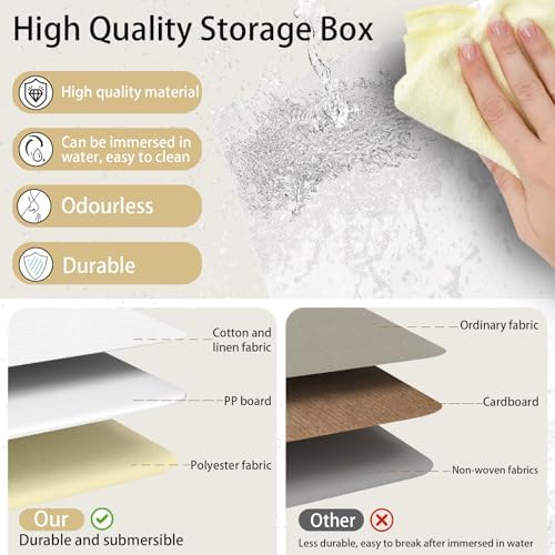 Yawinhe Fabric Storage Baskets, Foldable Closet Organizer for Shelves, Large Boxes with 3 Handles, Canvas Bins for Clothes, White\/Grey, 12.99''Lx9.05''Wx7.87''H, 4-Pack
