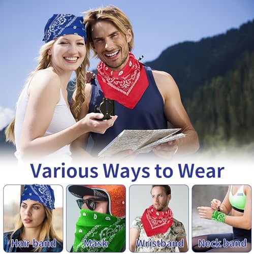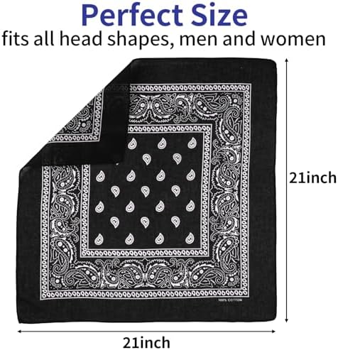 6 Pack Pure Cotton Bandana, Multi-Purpose Square Handkerchief, Face Mask headband for Men and Women
