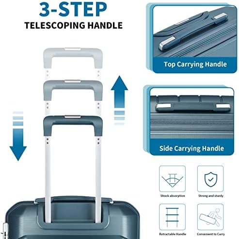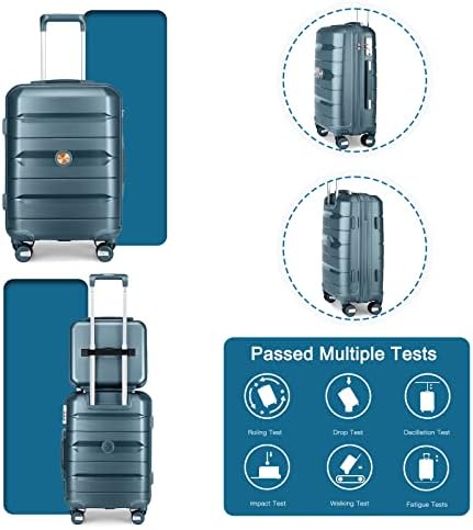 Somago 20" Carry On Luggage and 14" Mini Cosmetic Cases Travel Set Lightweight Polypropylene Suitcase with TSA Lock YKK Zipper Hardside Luggage with Spinner Wheels (2 Piece Set, Ice Blue)