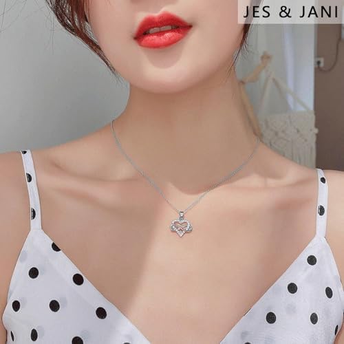JES & JANI Infinity Heart Necklace for Women, Love Heart Pendant with Cubic Zirconia and Infinity Necklace, 925 Sterling Silver Heart Necklace for Girlfriend