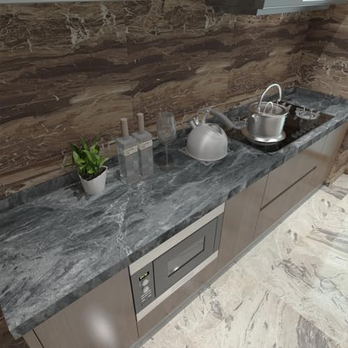 Dark Grey Marble Peel and Stick Wallpaper Gray Matte Granite Contact Wall Paper 16"x354" Self Adhesive and Removable Waterproof Viny Film Paper For Kitchen, Countertops, Walls and Floors, etc.