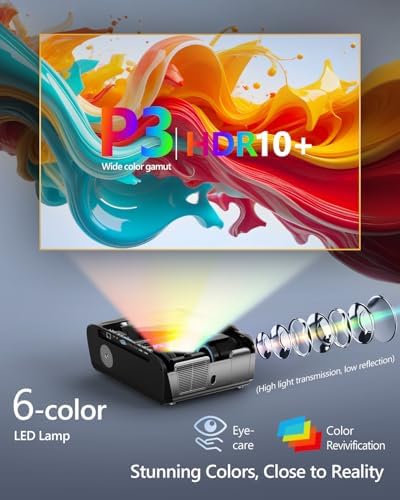 4K Projector Auto Focus HDR WiFi 6, Smart Daylight Projector 4K High Lumen 1800 ANSI LED 1080P Ultra HD Ceiling Home Theater Karaoke Movie Gaming Indoor Outdoor with Bluetooth HDMI USB Ethernet Apps