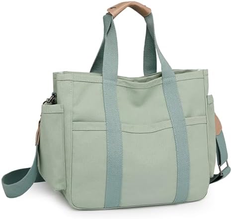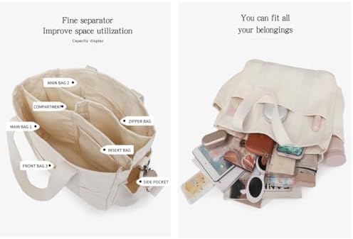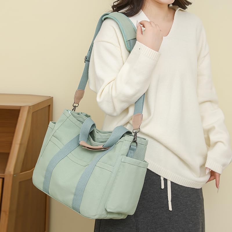 Eagerrich Canvas Crossbody Tote Bag with Multi Pockets for Women Work Large Handbags Shoulder Bag Messenger Bag Travel Purse