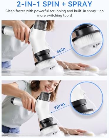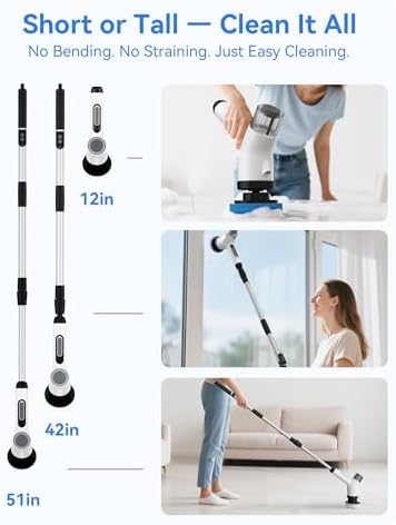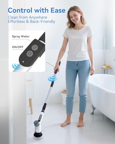 Premium Electric Spin Scrubber, IPX7 Waterproof with Foam Spray, Heavy-Duty Shower & Bathtub Brush for Bathroom, 300\/380 RPM High-Torque, Long Stainless Steel Handle, LCD Display & Remote by