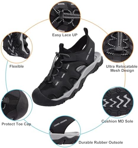 CAMEL CROWN Men's Hiking Sandals Anti-Slipping Athletic Water Shoes with Arch Support Closed Toe Outdoor Summer Camping Sandal for Beach