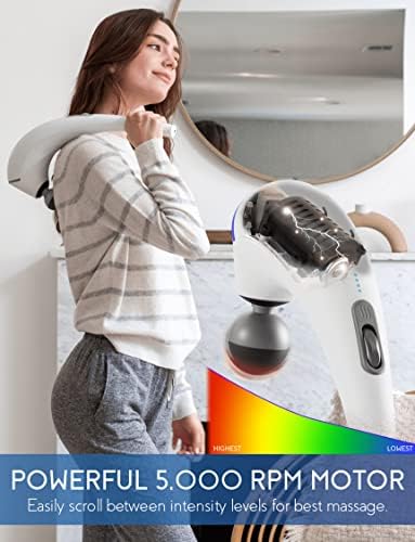 Zyllion Handheld Back and Neck Massager - Cordless Rechargeable Electric Vibrating Deep Tissue Massage with Heat for Athletes, Recovery and Muscle Pain Relief - White (ZMA-27-WT)