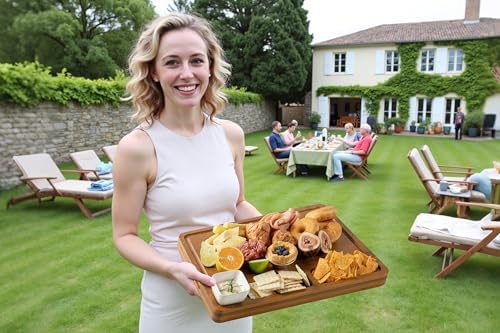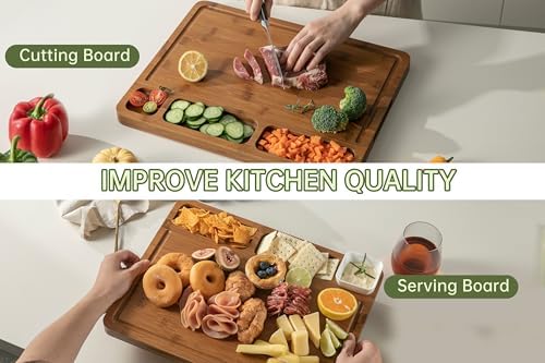 THETCHRY Cutting Board for Kitchen,Wood Thickened Non-Slip Cutting Board with Juice Groove & Handle, Bamboo Charcuterie Chopping Board for Meat, Perfect Size for Prep & Serving,16.93" x12.