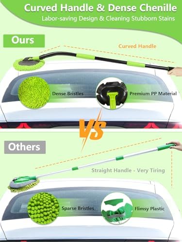 Curved Car Wash Brush Mop 47" with Long Handle Sturdy Metal Pole 3 Grip Points Washing Wand Auto Cleaning Tool Kit Scratch-Free Chenille Microfiber Soft Duster for Cars RV SUV Truck Caravan Van Wi