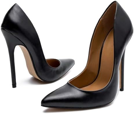 Heels Height: approximately 5inches/12cm extreme thin high heels . Sexy and elegant height to slim your leg . Material:Upper is premium good quality patent leather, non-slip rubber sole ,soft lining makes you feel amazingly comfortable for hours .Well hand-made. Desinger: Classic,beautiful and sexy closed pointed toe high heels shollow designer, easy to put on and take off . Occasion: For shoots or special occasions.You can wear these pumps for dance,party ,nightclub ,work,school,office ,wedding,date.take photos or videos Match with dress,Skirt,jeans various lifestyle outfit you like.Our pumps can bring a different and unforgettable memories for you. Size: Large plus wide size 38-48 high heels for wide feet women and men buyers ,try one size up for very wide foot because of the narrow pointy to designer .