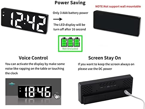 IOJBKI Digital Alarm Clock for Bedroom,Mirror Surface LED Electronic Clocks,Adjustable Brightness, Snooze Model,Voice Control,12\/24H Display,Alarm Clock for Kids,Office,Table,Nightstand-White