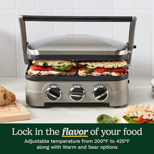 Cuisinart Panini Press, Stainless Steel Griddler, Sandwich Maker & More, 5-IN-1, GR-4NP1