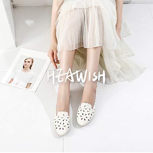 HEAWISH Women's Floral Ballet Flats for Women Black Beige Slip On Flowers PU Leather Round Toe Dress Shoes