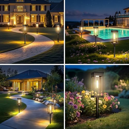 MEYCEMT Modern Solar Pathway Lights Outdoor - 8 Pack, IP65 Waterproof Square Design for Yard Garden Lawn, 14H Runtime Dusk to Dawn Auto, Warm White LED