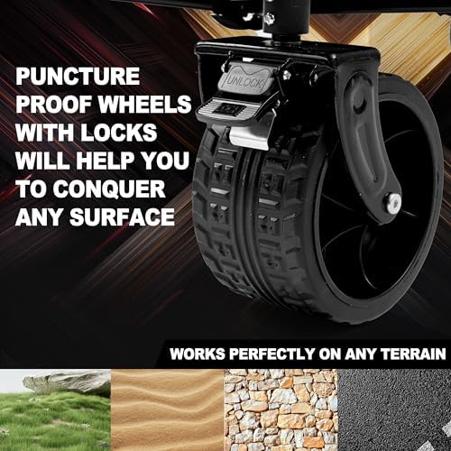 SunnyFeel 重型可折叠户外实用推车 400 磅容量可调节车把,可折叠沙滩轮稳定耐用牛津面料,适合购物花园露营(黑色和灰色)