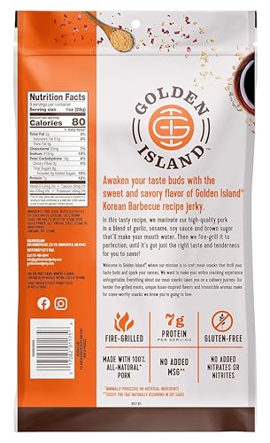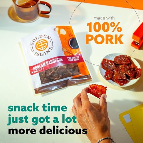 Golden Island Pork Jerky Korean BBQ Flavored, Specialty Meat Snack, Gluten Free with Korean Barbecue Seasoning, Bite Sized Sweet and Savory Protein Snack, 7g of Protein Per Serving, 9 Oz (2 Pack)