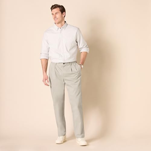 Amazon Essentials men's classic slim fit wrinkle resistant pleated twill cotton pants (with enlarged and lengthened options)
