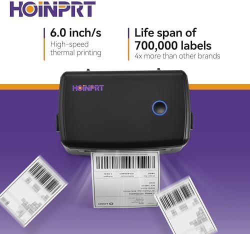 HOINPRT Thermal Label Printer 4x6 \u2013 High-Speed Shipping Label Maker for Small Business \u2013 Inkless, Portable Sticker Printer \u2013 Compatible with Amazon, USPS, Etsy, Windows, iOS, Android (B