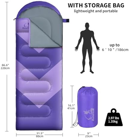 Sleeping Bag for Adults, Girls, Boys - 3 Season Warm & Cool Weather Lightweight Waterproof Camping Bag for Hiking, Outdoor Travel