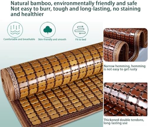 Natural Bamboo Summer Sleeping Mat, Foldable Cooling Mat for Bed, Home Quick Cooling Textile Rattan Mat, Bamboo Sleeping Mat for Home School Dormitory, Brown