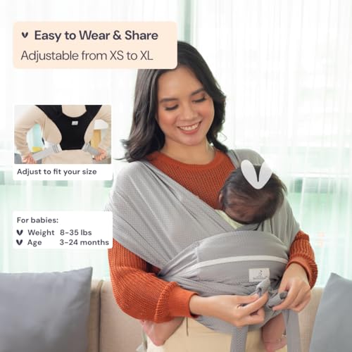 BabbleRoo Baby Wraps Carrier - Baby Essentials Baby Sling Carrier, Secure & Comfortable, Breathable, Easy-to-use, Adjustable XS to XL, Promoting Parent-Child Bonding, Gray