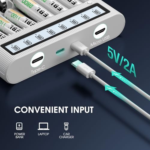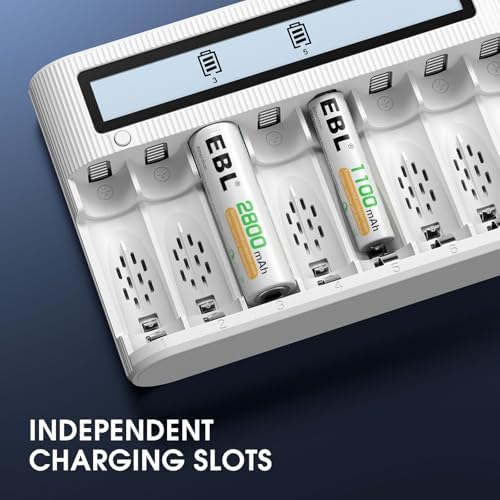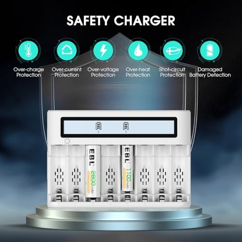 EBL 8 Bay Battery Charger with LCD Screen Fast Charging, AA AAA Battery Charger with 2800mAh NiMH AA Batteries 4pcs & 1100mAh AAA Battery 4pcs Combo