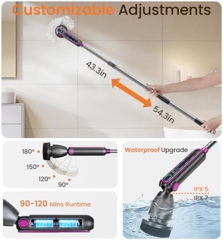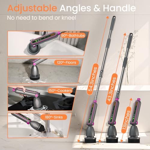 TECFUN Electric Spin Scrubber 16 in 1 Cleaning Brush with Adjustable Angles & Heads, Bathroom Power Scrubber with Extendable Handle, Interactive LED, Cleaning Supplies for Toilet,Kitchen,Shower-Gr