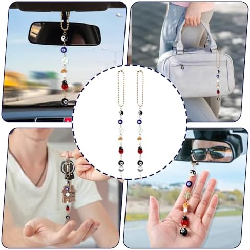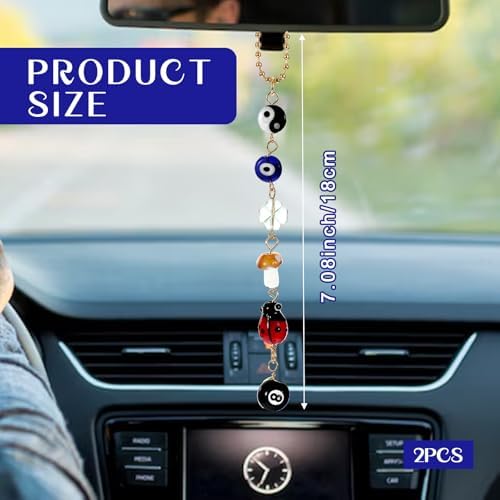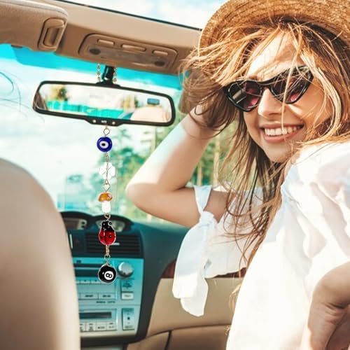 2 Evil Eye Cars Hanging Ornament, Good Luck Car Decor Charm for Rear View Mirror Accessories, Cute Boho Cars Decor Accessories Evil Eye Charm, Yin Yang Four Leaf Clover 8 Balls Car Accessory